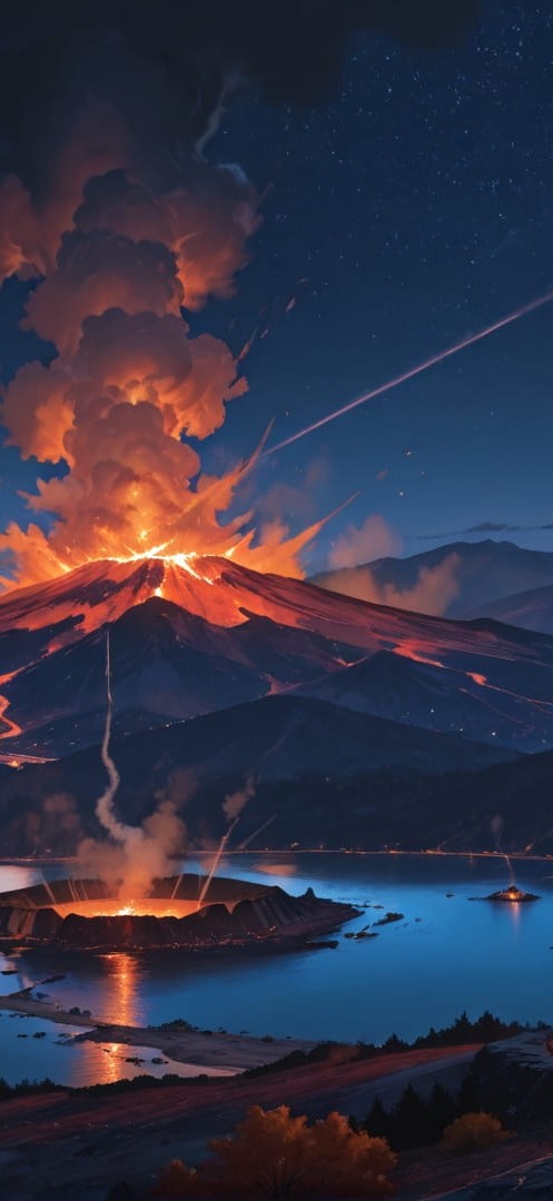 Blue Night Sea Volcano smartphone wallpaper free download, vertical 16:9 format, Blue, Night, Sea, Autumn