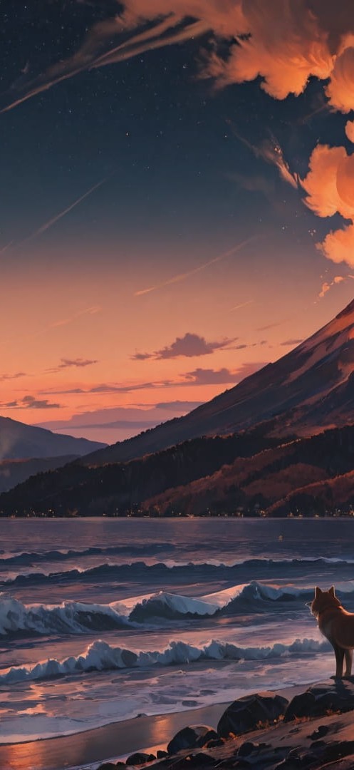 Orange Night Mountain Volcano smartphone wallpaper free download, vertical 16:9 format, Orange, Night, Mountain, Autumn