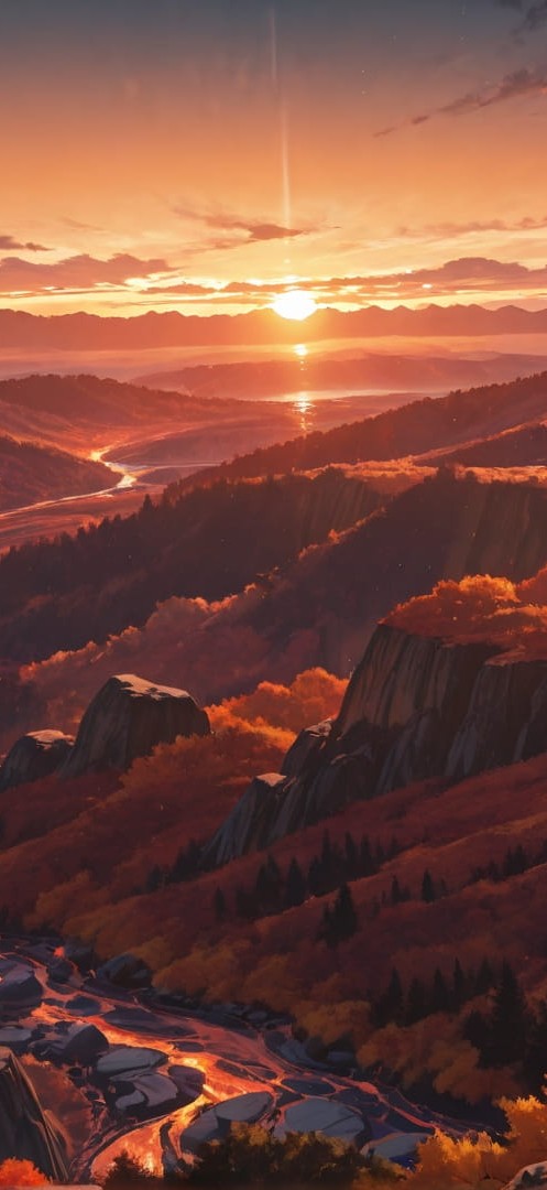 Orange Sunset Nature Volcano smartphone wallpaper free download, vertical 16:9 format, Orange, Sunset, Nature, Autumn