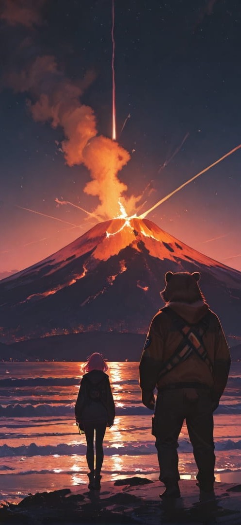 Orange Night City Volcano | Portrait wallpaper | 9:16 | Free smartphone wallpaper