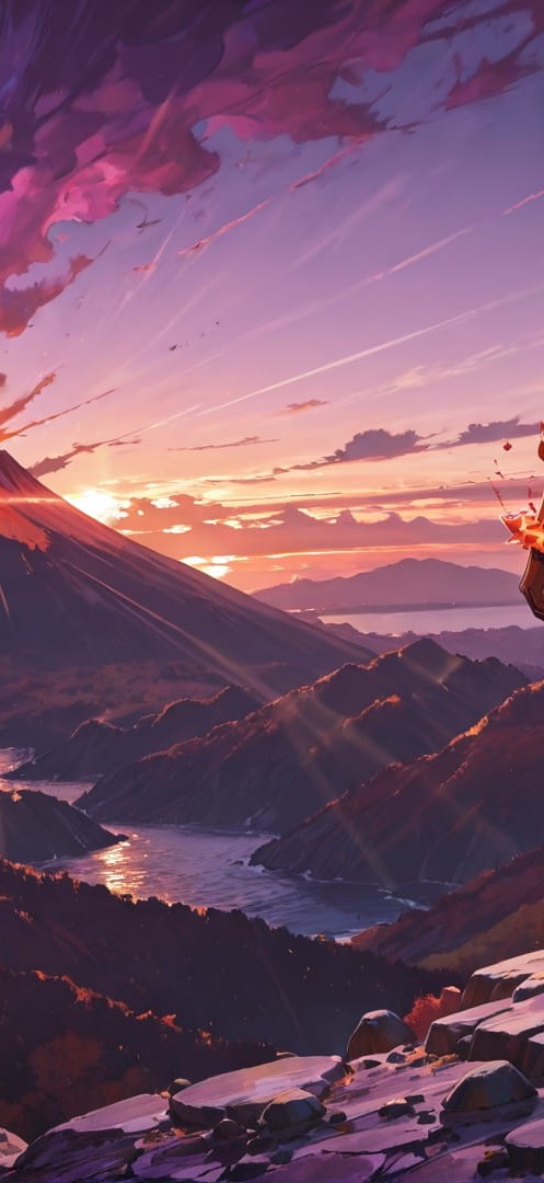 Purple Sunset Sea Volcano smartphone wallpaper free download, vertical 16:9 format, Purple, Sunset, Sea, Autumn