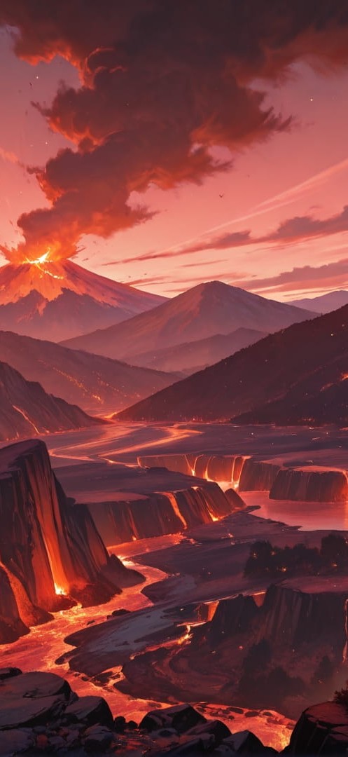 Red Afternoon Mountain Volcano smartphone wallpaper free download, vertical 16:9 format, Red, Afternoon, Mountain, Summer