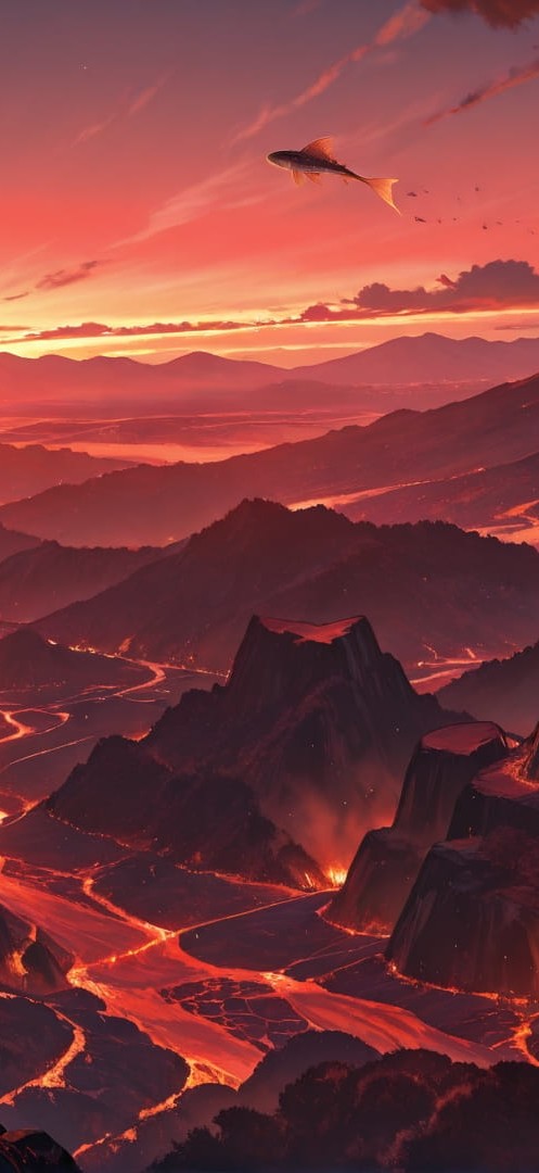 Red Sunset Mountain Volcano smartphone wallpaper free download, vertical 16:9 format, Red, Sunset, Mountain, Summer