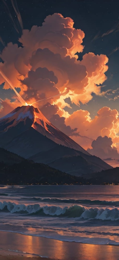 Yellow Night Nature Volcano smartphone wallpaper free download, vertical 16:9 format, Yellow, Night, Nature, Summer