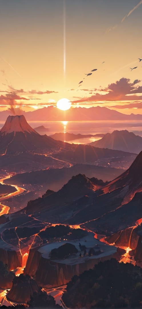 Yellow Sunset Sea Volcano | 1920×1080 | 16:9 | Free smartphone wallpaper