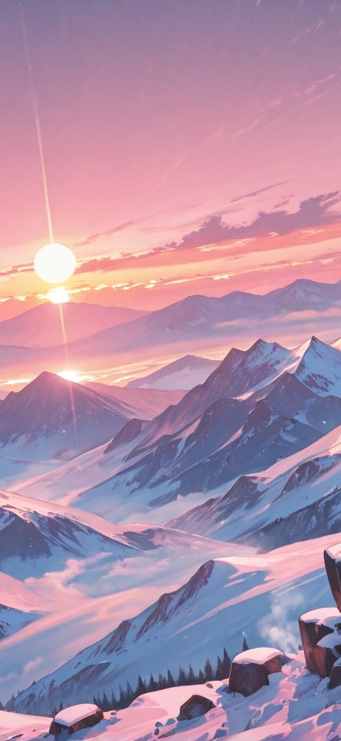 Pink Sunset Mountain Zenith smartphone wallpaper free download, vertical 16:9 format, Pink, Sunset, Mountain, Winter