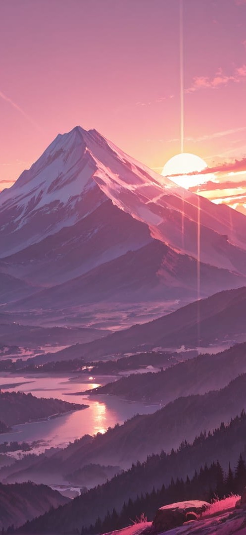 Pink Sunset Nature Zenith smartphone wallpaper free download, vertical 16:9 format, Pink, Sunset, Nature, Summer