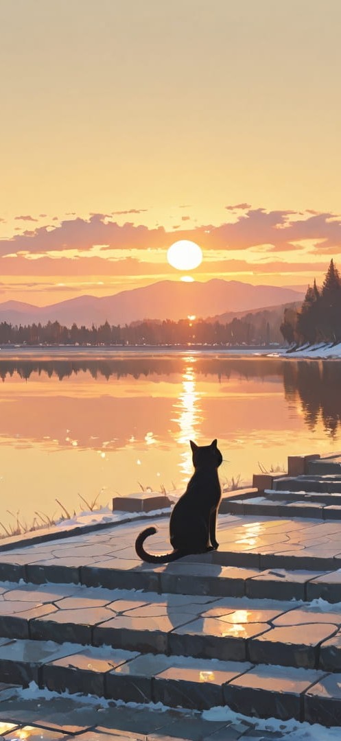 Yellow Sunset Sea Zenith smartphone wallpaper free download, vertical 16:9 format, Yellow, Sunset, Sea, Winter
