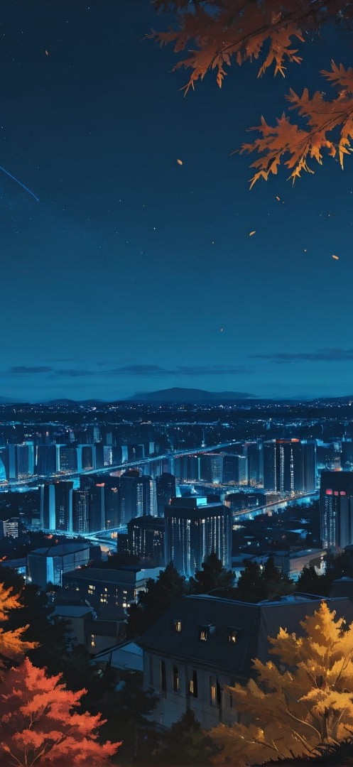 Blue Night City Palm smartphone wallpaper free download, vertical 16:9 format, Blue, Night, City, Autumn