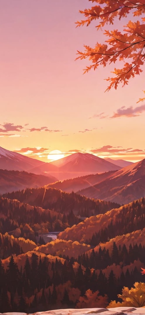 Pink Sunset Mountain Palm smartphone wallpaper free download, vertical 16:9 format, Pink, Sunset, Mountain, Autumn