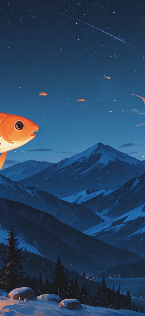 Orange Night Mountain Switch2 smartphone wallpaper free download, vertical 16:9 format, Orange, Night, Mountain, Winter