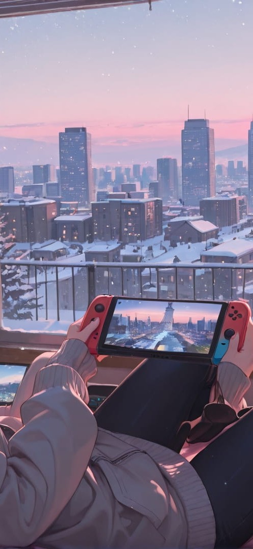 Pink Afternoon City Switch2 smartphone wallpaper free download, vertical 16:9 format, Pink, Afternoon, City, Winter