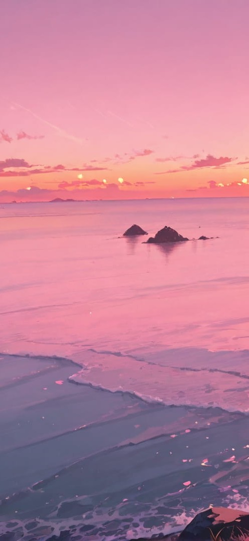 Pink Sunset Sea Switch2 smartphone wallpaper free download, vertical 16:9 format, Pink, Sunset, Sea, Spring