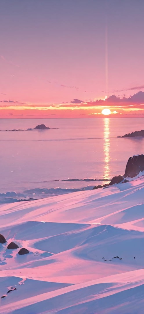 Pink Sunset Sea Agentic smartphone wallpaper free download, vertical 16:9 format, Pink, Sunset, Sea, Winter 001