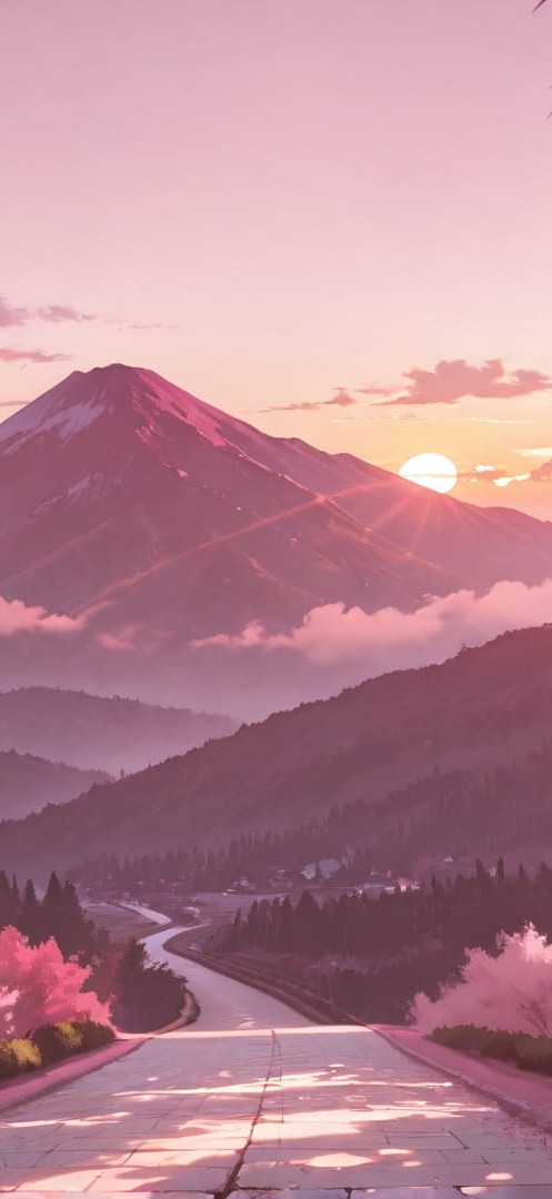 Green Sunset Mountain Bamboo | Portrait wallpaper | 9:16 | Free smartphone wallpaper