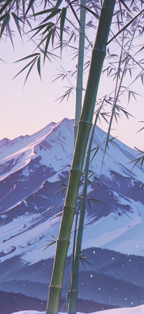 Purple Afternoon Mountain Bamboo smartphone wallpaper free download, vertical 16:9 format, Purple, Afternoon, Mountain, Winter 001