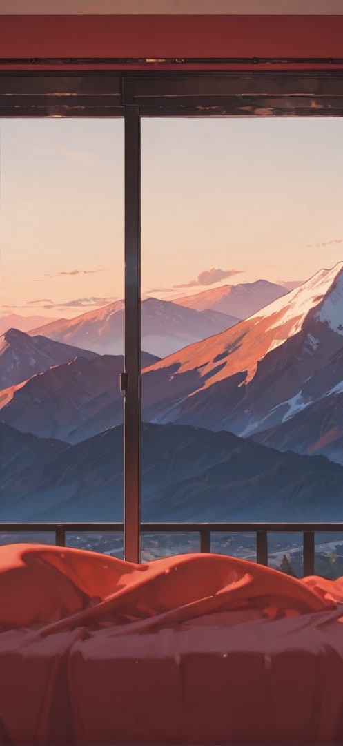 Orange Sunset Mountain Bedroom | Portrait wallpaper | 9:16 | Free smartphone wallpaper