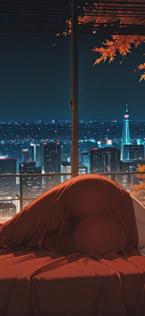 Red Night City Bedroom smartphone wallpaper free download, vertical 16:9 format, Red, Night, City, Autumn 001