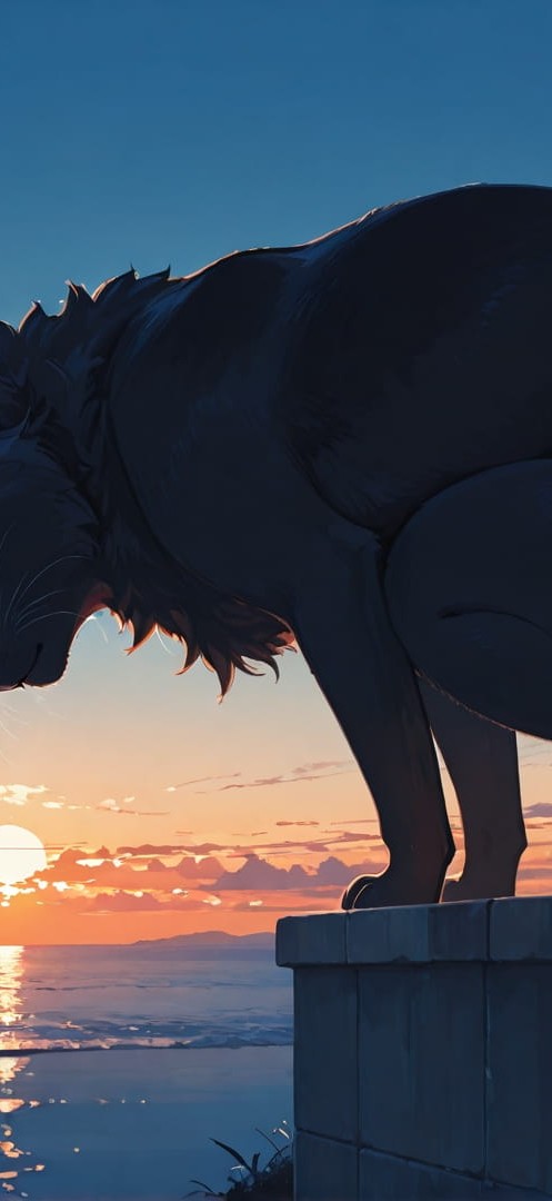 Blue Sunset Sky Cat smartphone wallpaper free download, vertical 16:9 format, Blue, Sunset, Sky, Summer 001