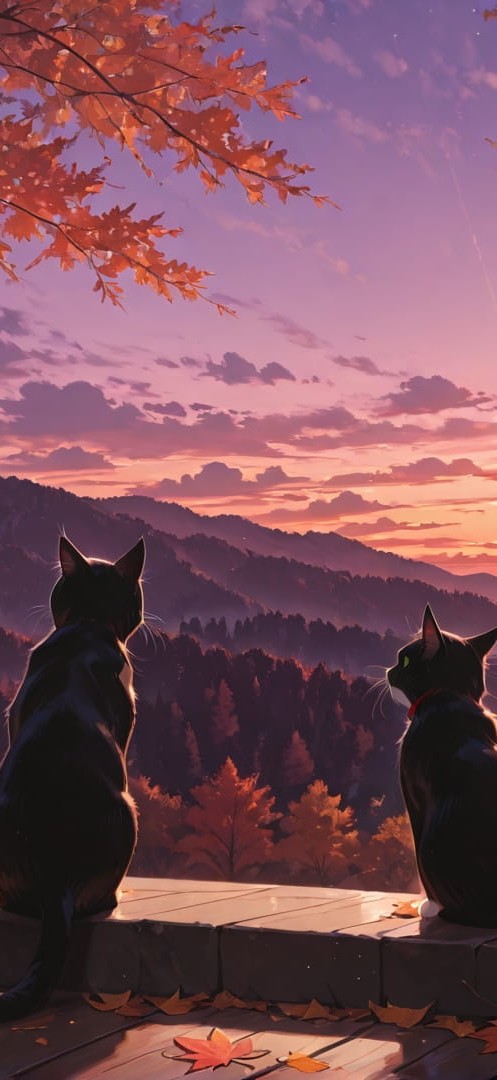 Purple Sunset Nature Cat smartphone wallpaper free download, vertical 16:9 format, Purple, Sunset, Nature, Autumn 001