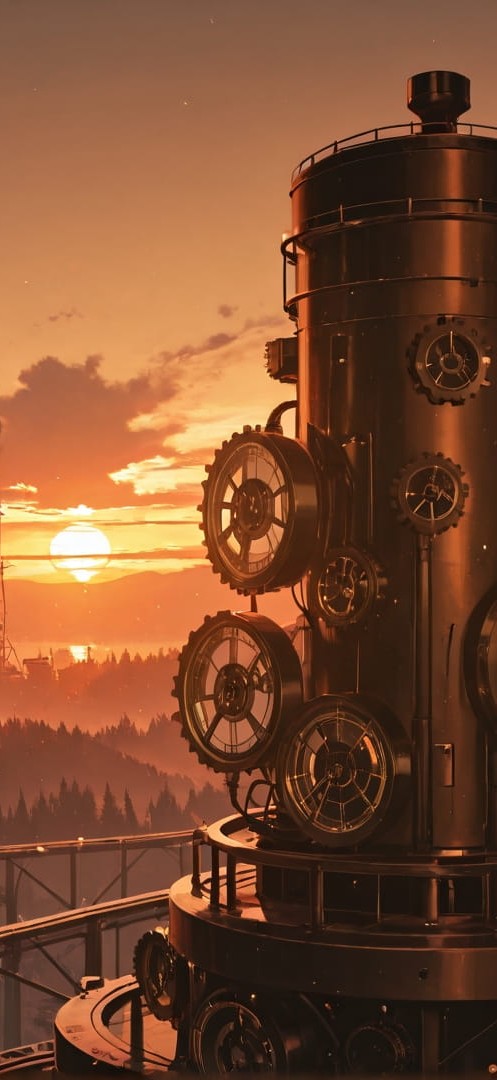Red Sunset Nature Clockwork | 1920×1080 | 16:9 | Free smartphone wallpaper