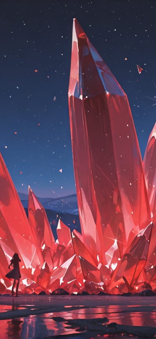 Red Night Mountain Crystal smartphone wallpaper free download, vertical 16:9 format, Red, Night, Mountain, Summer 001