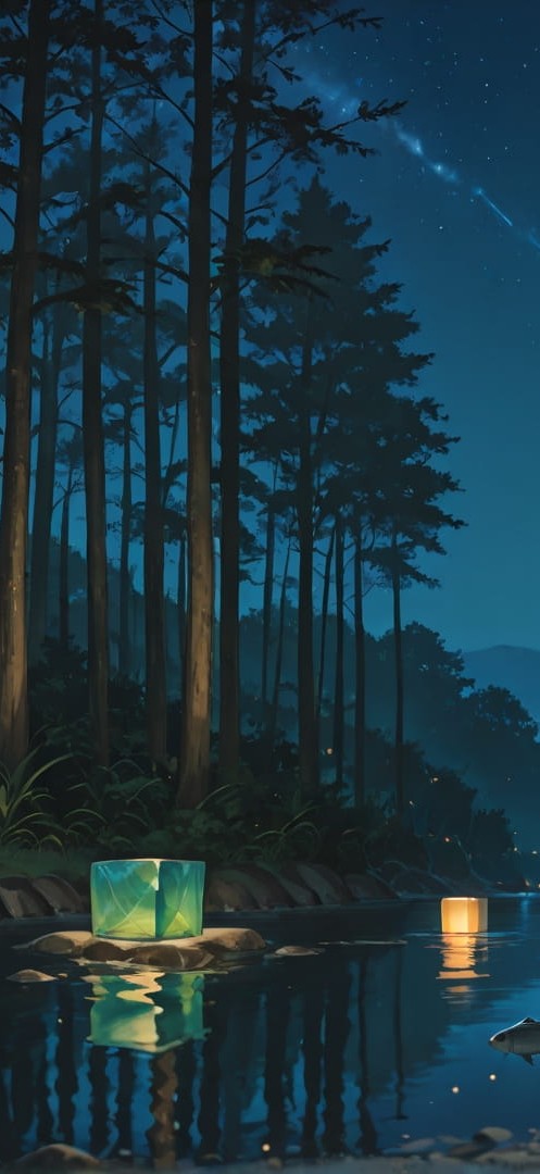 Green Night Nature Cube smartphone wallpaper free download, vertical 16:9 format, Green, Night, Nature, Summer 001