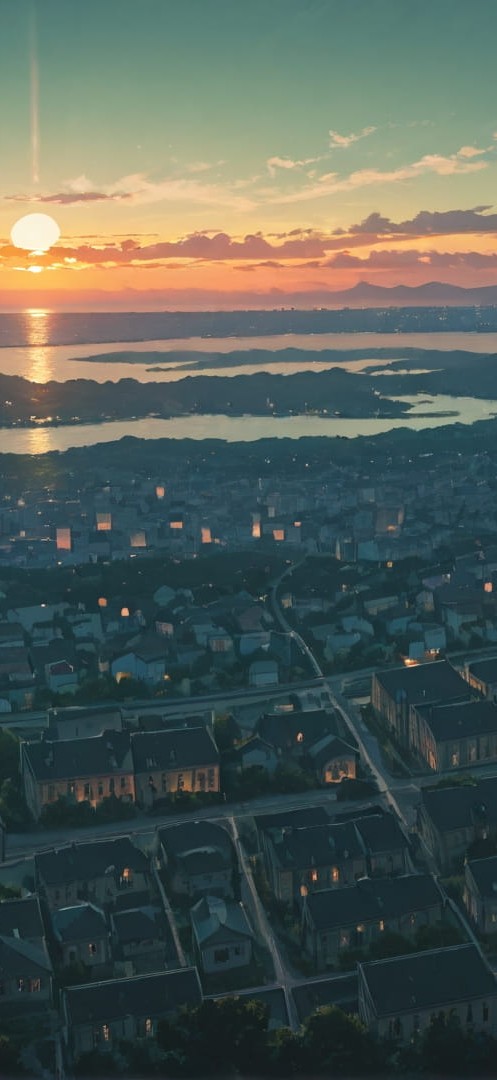Green Sunset City Cube smartphone wallpaper free download, vertical 16:9 format, Green, Sunset, City, Spring 001