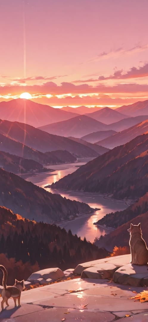 Pink Sunset Mountain Cube smartphone wallpaper free download, vertical 16:9 format, Pink, Sunset, Mountain, Autumn 001