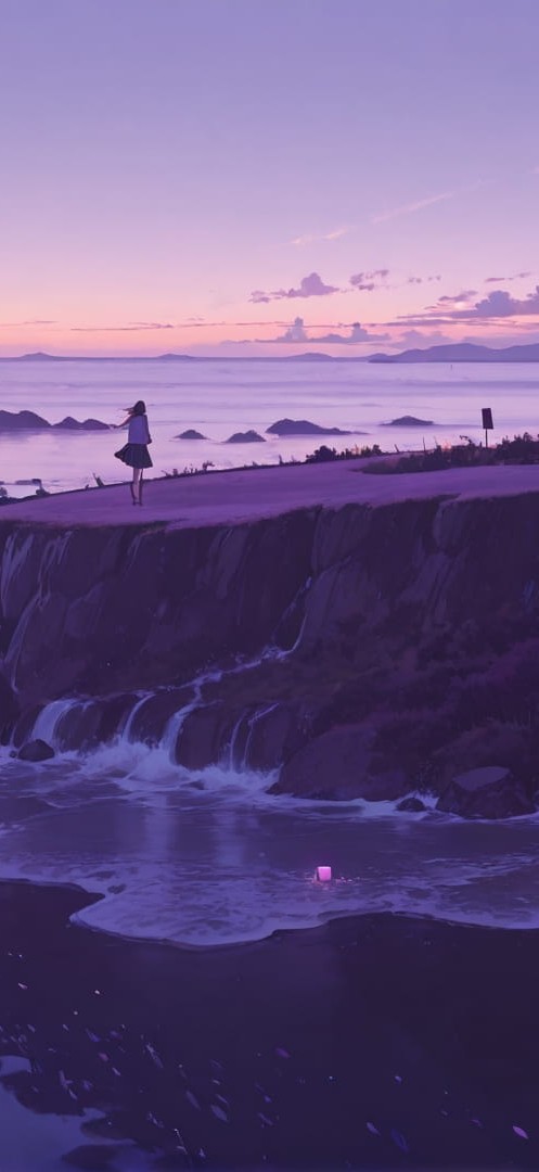 Purple Afternoon Sea Cube smartphone wallpaper free download, vertical 16:9 format, Purple, Afternoon, Sea, Spring 001