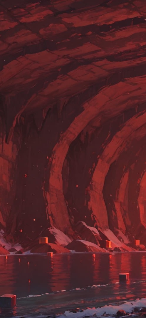 Red Afternoon Sea Cube smartphone wallpaper free download, vertical 16:9 format, Red, Afternoon, Sea, Winter 001