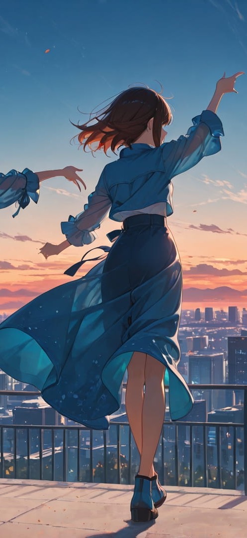 Blue Sunset City Dance smartphone wallpaper free download, vertical 16:9 format, Blue, Sunset, City, Autumn 001