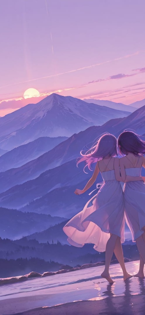 Purple Afternoon Mountain Dance smartphone wallpaper free download, vertical 16:9 format, Purple, Afternoon, Mountain, Summer 001