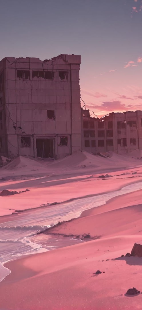Pink Sunset Sea Desert smartphone wallpaper free download, vertical 16:9 format, Pink, Sunset, Sea, Winter 001