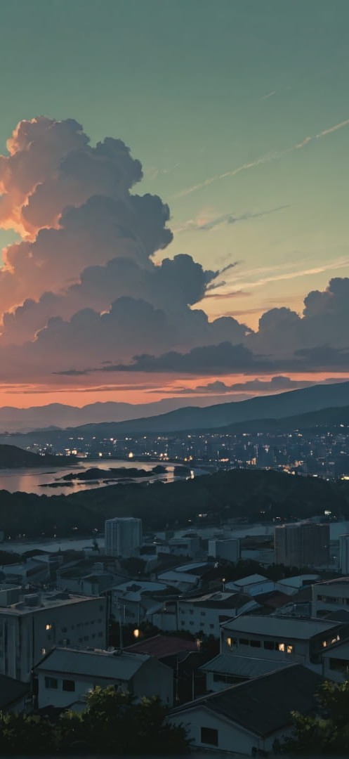 Green Sunset City Disaster smartphone wallpaper free download, vertical 16:9 format, Green, Sunset, City, Summer 001