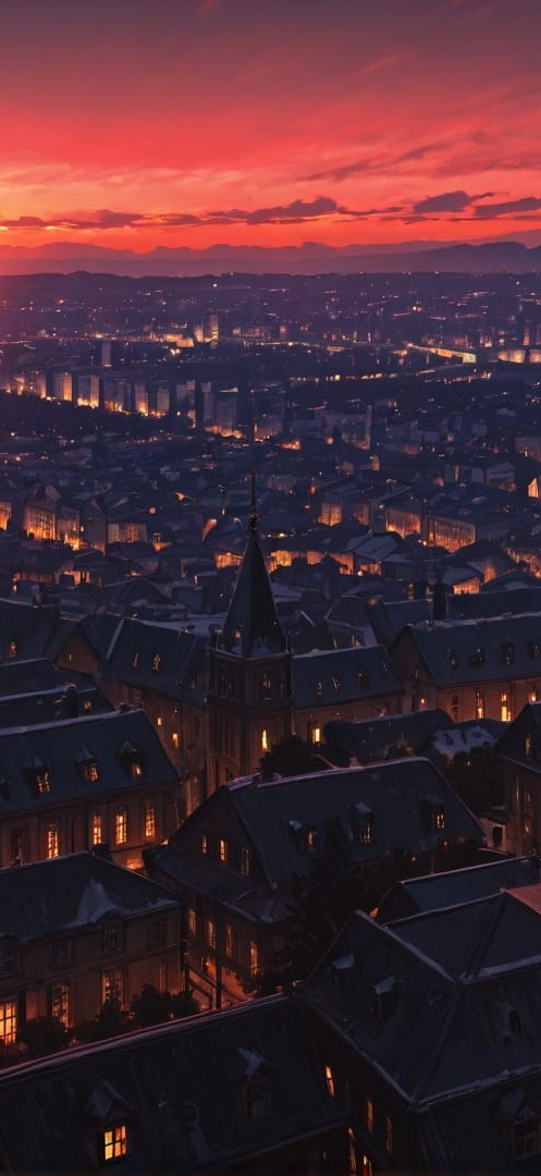 Red Sunset City DramaClub smartphone wallpaper free download, vertical 16:9 format, Red, Sunset, City, Winter 001