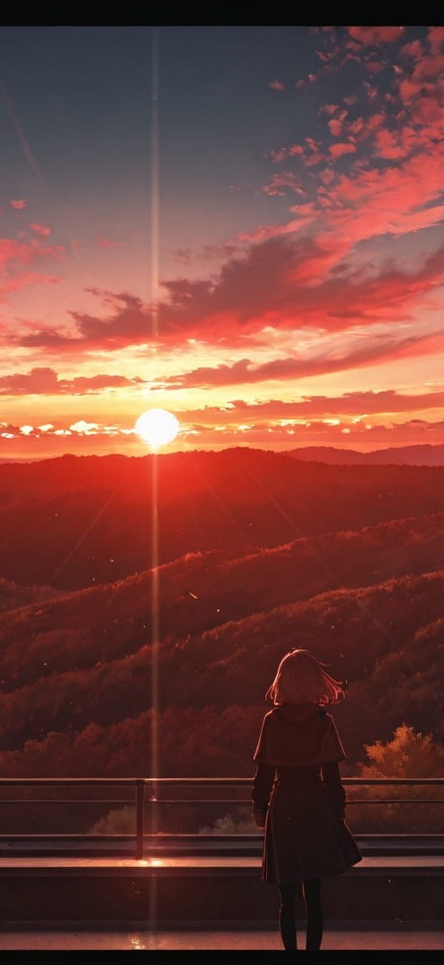 Red Sunset Sky DramaClub smartphone wallpaper free download, vertical 16:9 format, Red, Sunset, Sky, Autumn 001