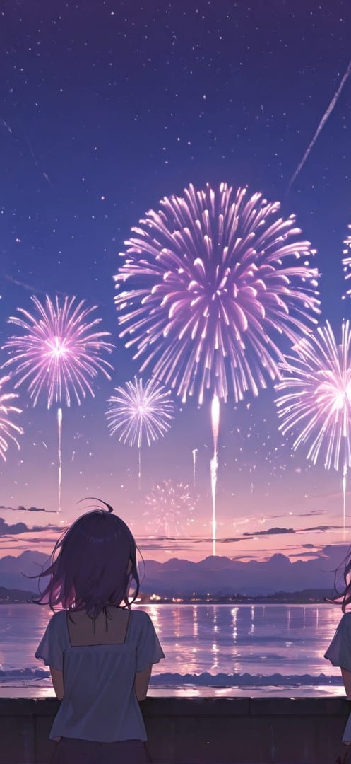 Purple Afternoon Sky Fireworks smartphone wallpaper free download, vertical 16:9 format, Purple, Afternoon, Sky, Summer 001