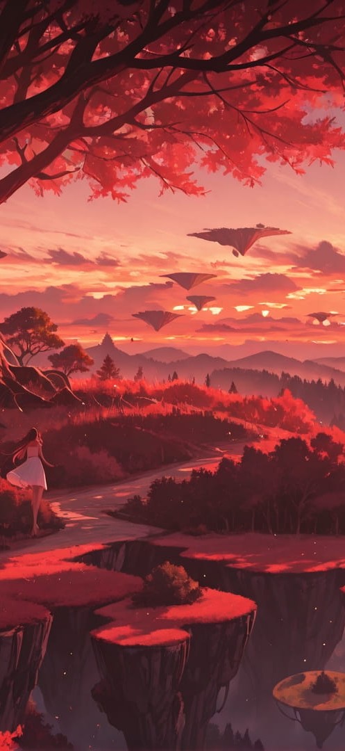 Red Sunset Nature FloatingIslands smartphone wallpaper free download, vertical 16:9 format, Red, Sunset, Nature, Summer 001