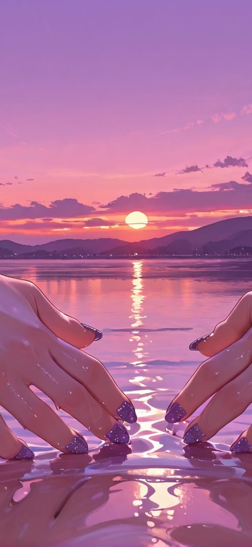 Purple Sunset Sea GimmeGummy smartphone wallpaper free download, vertical 16:9 format, Purple, Sunset, Sea, Summer 001