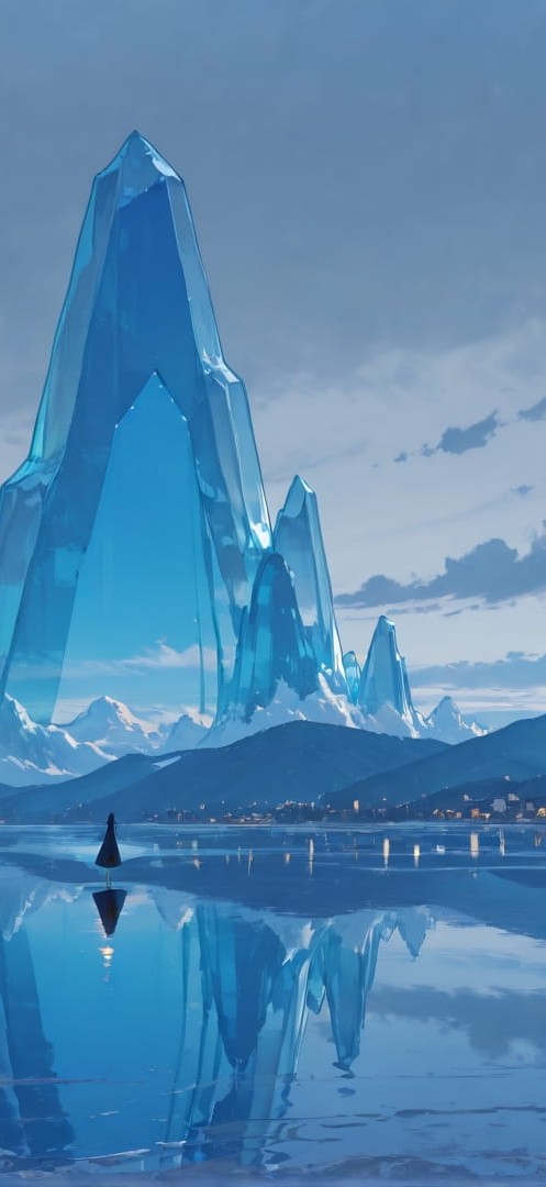 Yellow Night City Glacier | Portrait wallpaper | 9:16 | Free smartphone wallpaper
