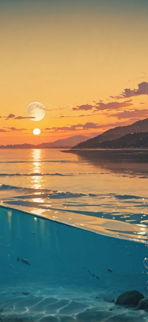Yellow Sunset Sea Hormuz smartphone wallpaper free download, vertical 16:9 format, Yellow, Sunset, Sea, Spring 001