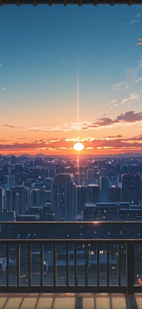 Blue Sunset City Japanese smartphone wallpaper free download, vertical 16:9 format, Blue, Sunset, City, Autumn 001