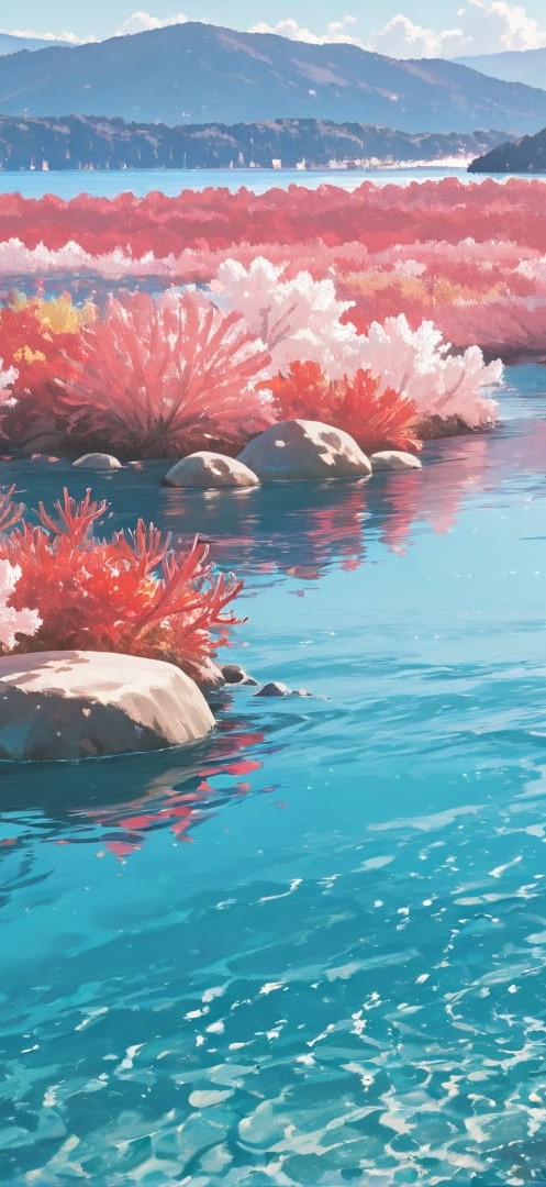 Red Afternoon Sea Lagoon smartphone wallpaper free download, vertical 16:9 format, Red, Afternoon, Sea, Spring 001