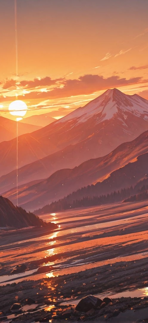 Orange Sunset Mountain Marble smartphone wallpaper free download, vertical 16:9 format, Orange, Sunset, Mountain, Spring 001