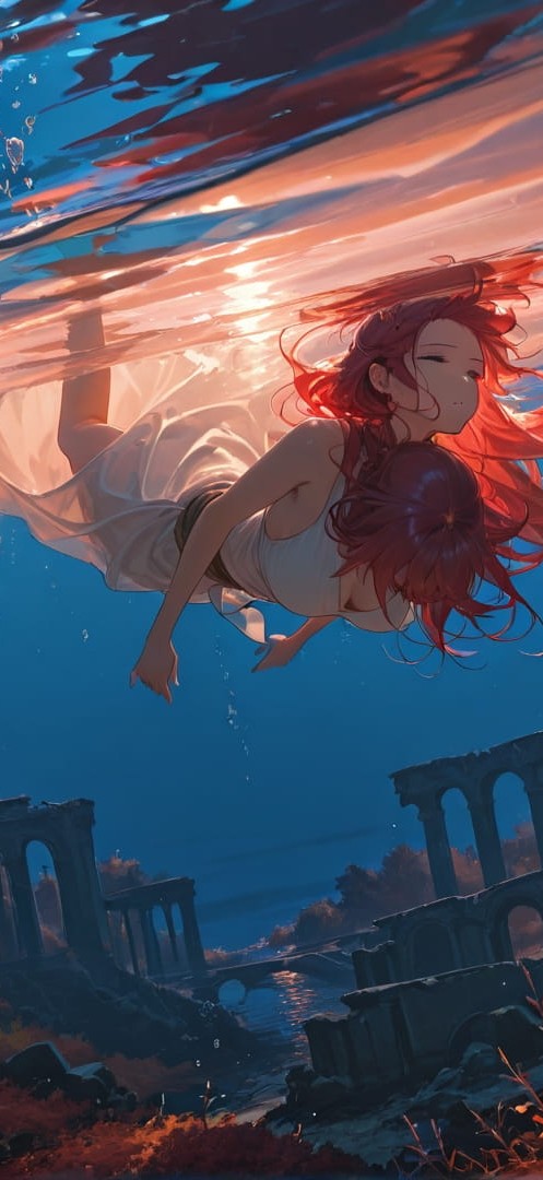 Red Night Sea Ruins | 1920×1080 | 16:9 | Free smartphone wallpaper