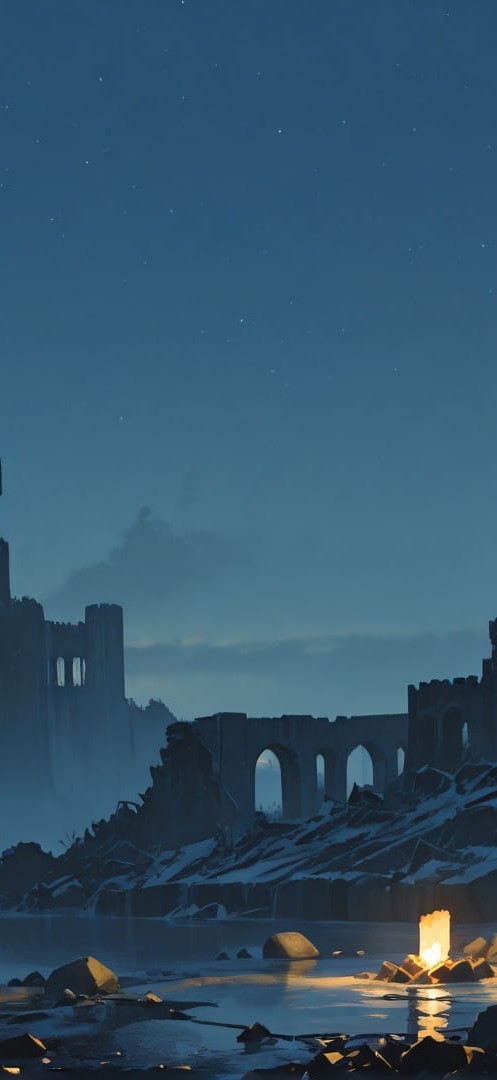 Yellow Night Sea Ruins | Portrait wallpaper | 9:16 | Free smartphone wallpaper