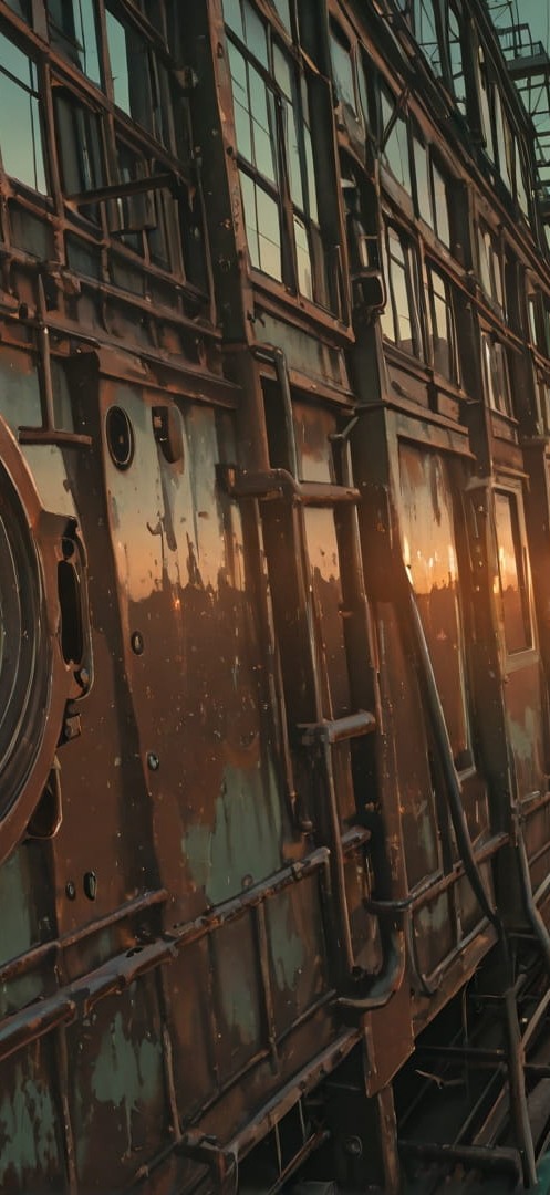 Green Sunset City Rust smartphone wallpaper free download, vertical 16:9 format, Green, Sunset, City, Autumn 001