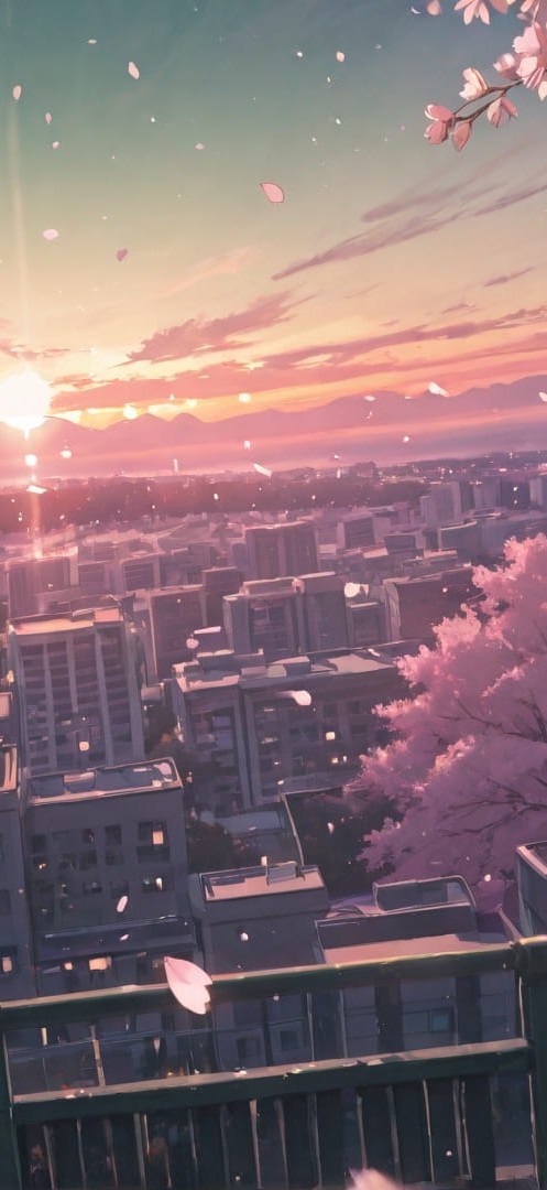 Pink Sunset City Sakura | Portrait wallpaper | 9:16 | Free smartphone wallpaper