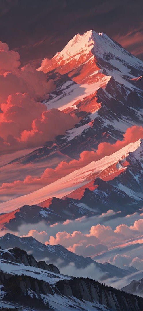 Red Afternoon Mountain Storm smartphone wallpaper free download, vertical 16:9 format, Red, Afternoon, Mountain, Summer 001